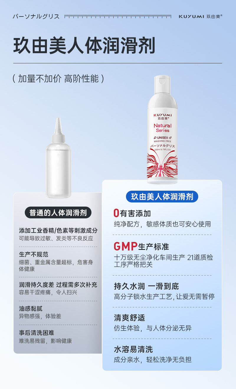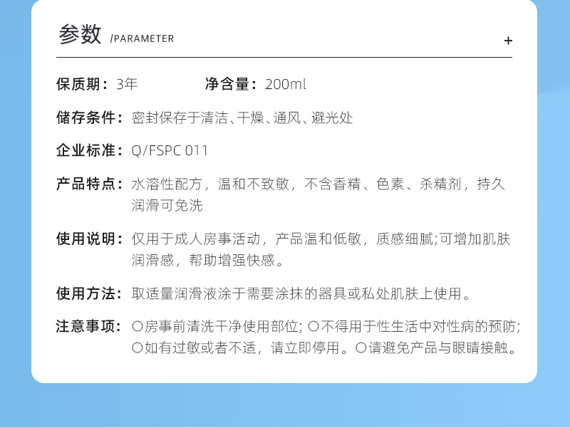 水溶性配方,溫和不致敏,不含礦物油、酒精、色素、殺精劑等有害物質(zhì)