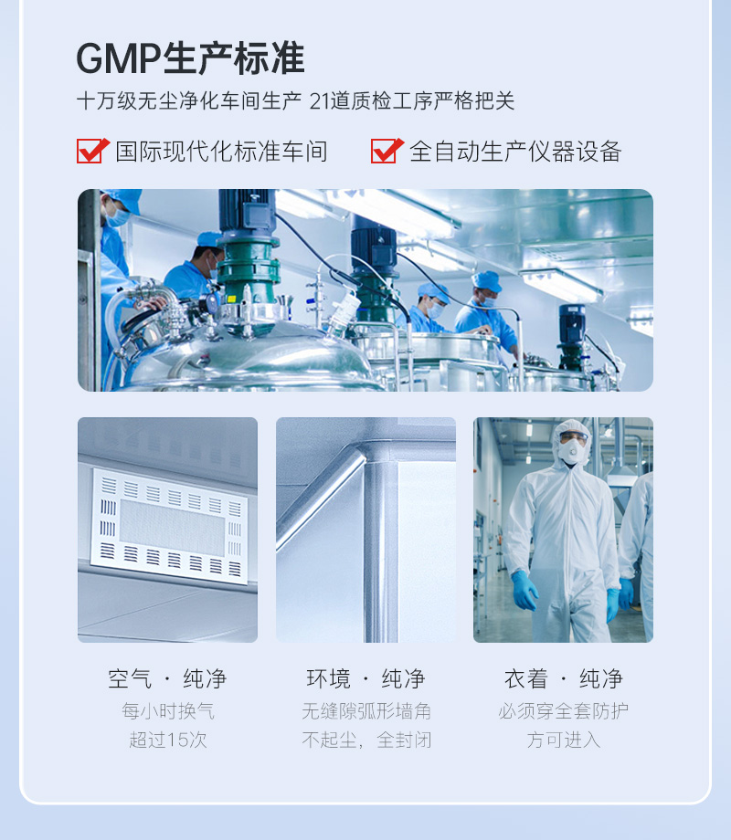 嚴(yán)格按照GMP生產(chǎn)規(guī)范!生產(chǎn)前原材料檢測(cè),確保原料合格。生產(chǎn)中半成品檢測(cè),確保生產(chǎn)過程無污染。生產(chǎn)后產(chǎn)品檢測(cè)并且出具出廠檢測(cè)報(bào)告,確保產(chǎn)品符合標(biāo)準(zhǔn),從原料到成品層層把關(guān),確保每一件均為精品。200ml大容量,1瓶頂2瓶!